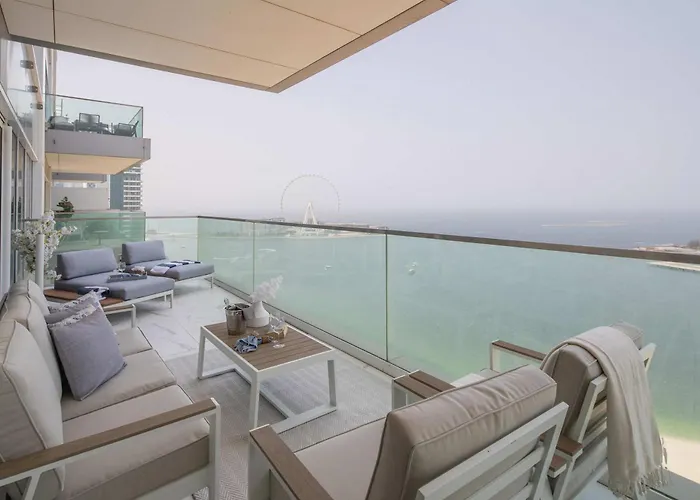 Spacious 2BR with Sea Views in The One JBR Apartment de 179 m^2 se află la aproximativ 10 minute cu mașina de Satul Cunoaşterii și la aproape 800 de metri de stația de metrou Staţia de DAMAC Properties. Oaspeții pot folosi un studio de fitness și o piscină, în timp ce sunt cazați ușor accesibil pe jos de la The Walk at JBR.